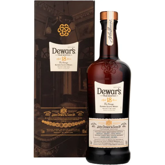 Dewar's 18 Year Old Blended Scotch Whisky is a blend of very rare vintage single malt and single grain Scotch whiskies, hence the nickname, "The Vintage." Each bottle includes whiskies from the five single malt distilleries owned by John Dewar and Sons. The whiskies are then married in vintage oak casks. This special blend is creamy with notes of honey and marzipan. Dewar's 18 Year Old Founders Reserve Scotch Whisky, reserve online and collect from our duty free store before you travel. Explore our extensive range of beauty, liquor and food when you reserve your duty free order online. Find the main Dewar's products available to purchase and reserve at airport. With up to the benefit of 1000s more products available when you reserve in advance, enjoy shopping tax and duty free products online with more choice, and without the rush! Reserve online, collect and pay in store. Dewar's 18 Year Old Blended Scotch Whisky is a blend of very rare vintage single malt and single grain Scotch whiskies, hence the nickname, "The Vintage." Each bottle includes whiskies from the five single malt distilleries owned by John Dewar and Sons. The whiskies are then married in vintage oak casks. This special blend is creamy with notes of honey and marzipan.