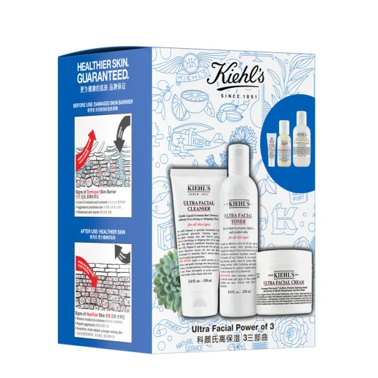 3 steps to ultra moisture, The ultimate moisture collection. Set Includes: Ultra Facial Cleanser, Ultra Facial Toner, Ultra Facial Cream. Kiehl's Ultra Facial Power Of 3 Gift Set, reserve online and collect from our duty free store before you travel. Explore our extensive range of beauty, liquor and food when you reserve your duty free order online. Find the main Kiehl's products available to purchase and reserve at airport. With up to the benefit of 1000s more products available when you reserve in advance, enjoy shopping tax and duty free products online with more choice, and without the rush! Reserve online, collect and pay in store.3 steps to ultra moisture, The ultimate moisture collection. Set Includes: Ultra Facial Cleanser, Ultra Facial Toner, Ultra Facial Cream.