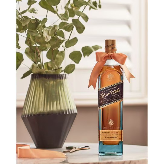 Johnnie Walker Blue Label is a velvety smooth and vibrant Scotch crafted using rare hand-selected whiskies from across the four corners of Scotland. Only 1 in 10,000 casks from our unparalleled reserves of aging Scotch, including some from long-closed ‘ghost’ distilleries, is considered to have the remarkable depth of character needed to craft this exceptionally smooth whisky. Rolling waves of rich spice give way to a deep surge of vanilla sweetness and honey. Caramel and hazelnuts course through dark chocolate before a luxuriously long, smoky finish. Johnnie Walker Blue Label is great enjoyed with a sip of iced water to prepare your palate, followed by a sip of whisky. A gift of remarkable rarity, an extraordinary whisky to discover the depth of flavour of the rarest whiskies. Velvety smooth and vibrant Scotch crafted using rare hand-selected whiskies from across the four corners of Scotland including some from long-closed 'ghost' distilleries. Only 1 in 10,000 casks from our unparalleled reserves of aging Scotch is considered to have the depth of character needed to craft Blue Label. Rolling waves of rich spice give way to a deep surge of vanilla sweetness and honey. Caramel and hazelnuts course through dark chocolate before ending a luxuriously long, smoky finish. Johnnie Walker Blue Label is great enjoyed with a sip of iced water to prepare your palate, followed by a sip of whisky. A gift of remarkable rarity. An extraordinary whisky to discover the depth of flavour of the rarest whiskies.