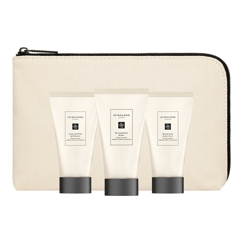 A trio of Hand Creams in popular Jo Malone London fragrances to condition and nourish the skin. Just the right size to care for hands on the go. Wrapped in a gift box to surprise someone special or keep for yourself. This gift collection contains: • English Pear & Freesia Hand Cream 30ml • Blackberry & Bay Hand Cream 30ml • Wood Sage & Sea Salt Hand Cream 30ml