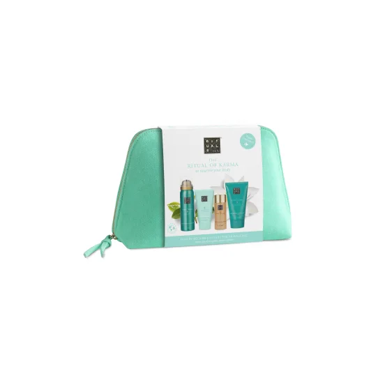 End or start your day on a high with The Ritual of Karma's positive vibes when you treat yourself to this beautiful travel exclusive. Nestled inside this pouch are four products, scented with the floral aroma of holy lotus and white tea, that will inspire soulfulness and encourage meaningful attention to the little things. With a mini shower foam, cooling after sun shower gel, body cream and shimmering body oil, everything you need for a mini body care routine – no matter where you lay your head at night. Better for the planet: Our exclusive travel pouch has a new look for 2021. Now produced with recycled cotton canvas. The set includes: • Foaming shower gel 50ml • Cooling after sun shower gel 50ml • Body cream 70ml • Shimmer oil 30ml